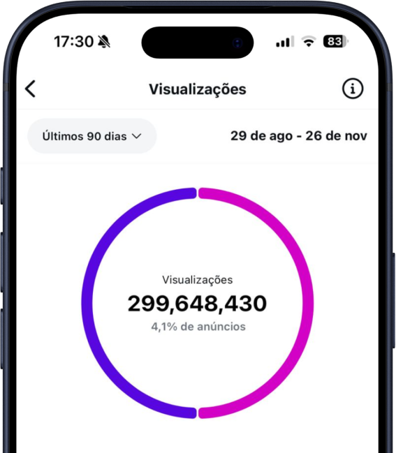 Apenas no último mês, meu conteúdo no Instagram atingiu mais de 300 MILHÕES de pessoas.